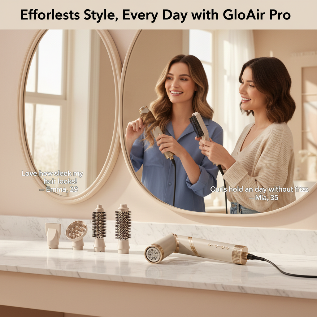 See real transformations from dull to dazzling. These images showcase how GloAir Pro elevates every hair typeβstraight, wavy or curly.